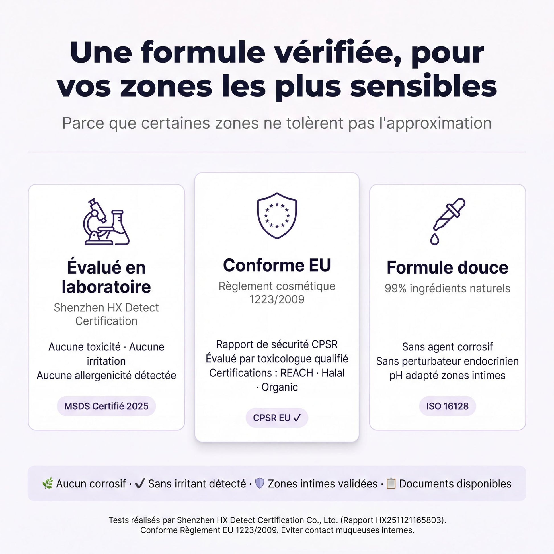 Comme pour tout soin, un test localisé est recommandé en cas de peau très réactive.